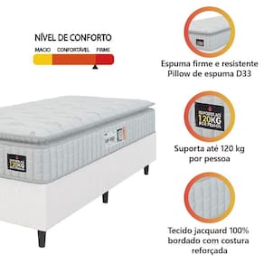 MODELO: Cama Box Solteiro Colchão Espuma D33 Pillow Top Van Gogh 88x188x62cm Suporta Até 120 Kg Por Pessoa