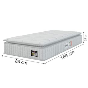 MEDIDAS DO COLCHÃO:: A = 24 cm L = 88 cm P = 188 cm | MEDIDAS DO BOX:: A = 38 cm / 26 cm (sem pés) L = 88 cm P = 188 cm | ALTURA DOS PÉS:: 12 cm | PESO:: 30,35 kg | PESO SUPORTADO:: 120 kg por pessoa | COR:: Branco | REVESTIMENTO SUPERIOR:: Tecido Malha Branco | MODELO:: Cama Box Solteiro Colchão Espuma D33 Pillow Top Van Gogh 88x188x62cm Suporta Até 120 Kg Por Pessoa | MARCA COLCHÃO:: Hellen | MARCA BOX:: Prince | REVESTIMENTO LATERAL:: Tecido Jacquard + Faixa: 100% Poliéster | REVESTIMENTO INTERIOR:: Espuma D33 aliada com o EPS que faz com que o colchão suporte até 120kg por pessoa | POSSUI EPS:: Sim | ESPUMA:: D33 | EURO/PILLOW:: Pillow Top | TECIDO BOX:: Linho | MATERIAL DA ESTRUTURA DO BOX:: Madeira de reflorestamento | PÉS:: 6 | MATERIAL DOS PÉS:: PVC | ITENS INCLUSOS:: 1 Colchão de 0,88m e 1 box de 0,88m | INSTRUÇÕES / CUIDADOS:: Utilizar em local seco com passagem de ar, não dobrar, fazer giro quinzenalmente no sentido pés/cabeceira | GARANTIA COLCHÃO:: 12 Meses | GARANTIA BOX:: 3 Meses | AVISO:: A Esplanada Móveis se responsabiliza pela dos produtos adquiridos até a porta de entrada ou portaria do endereço indicado, se a portaria do condomínio permitir, as s são efetuadas no piso térreo e é de responsabilidade do cliente.