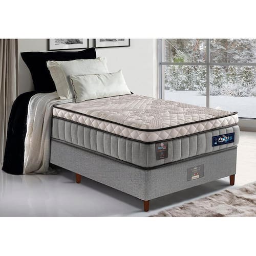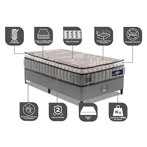 Euro Pillow: É o mesmo que ter um travesseiro gigante junto ao seu colchão, confeccionado em tecido matelassê bordado e com espuma soft, que proporciona ao colchão um conforto esplêndido. O Euro Pillow é uma camada alta e reta presa ao colchão confeccionado em tecido matelassê bordado e com espuma soft, que proporciona ao colchão ser mais aconchegante.