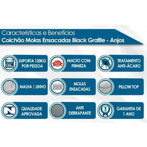 Conjunto Box Solteiro: Colchão Molas D Angelis Ensacadas Black Graphite + Base CRC Suede Gray (88x188) Abaixo segue os produtos do KIT: Conjunto Box Solteiro: Colchão Molas D Angelis Ensacadas Black Graphite + Base CRC Suede Gray (88x188) Colchão Solteiro Molas Ensacadas Black Grafite (88x188x24) - D Angelis