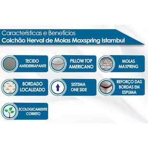 Cama Box Solteiro: Colchão Molas Herval Maxspring Istambul + Base CRC Suede Bege(88x188) Abaixo segue os produtos do KIT: Cama Box Solteiro: Colchão Molas Herval Maxspring Istambul + Base CRC Suede Bege(88x188) Colchão Solteiro Molas Maxspring Istambul Pillow Top (88x188x33) - Herval