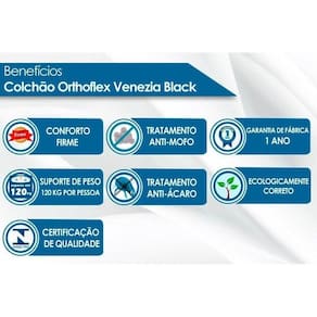 Colchão Solteiro p/ Hotelaria Molas Bonnel Venezia Black Euro Pillow (78x188x24) - Orthoflex