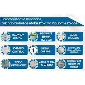 Colchão Solteiro Molas Prolastic Palace Euro Pillow (88x188x24) - Probel