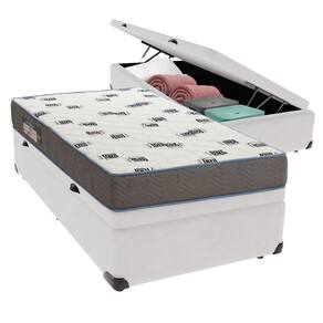 Base Box com Baú: Marca: Ortobom; Cor do Box: Branco; Material dos pés: Madeira; Estrutura: Madeira; Peso máximo recomendado: até 150kg de cada lado; Altura do Box: 25cm; Altura dos pés: 10cm; Altura total: 35cm; Garantia: 03 meses; Selo Ecologicamente Correto.