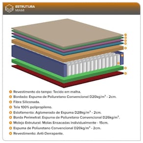 As molas ensacadas sao responsaveis por garantir uma excelente noite de sono. Trata-se de um sistema que opera de maneira individual, sendo independentes umas das outras, assegurando assim a longevidade da vida util do colchao, ja que quando alguem se deita, os movimentos ondulatorios sao minimamente percebidos, proporcionando um conforto significativo durante o sono.