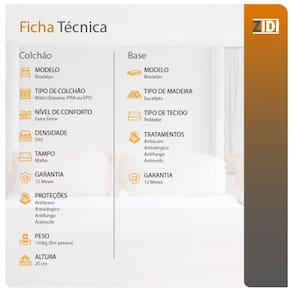 Conjunto Cama Box Twin Size Espuma D45 Brooklyn Extra Firme