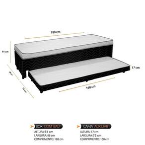 O Bibox Baú Laura é uma solução versátil que combina funcionalidade e resistência, graças à sua espuma D28 e ao mecanismo de abertura com mola que oferece firmeza e longevidade. A cama auxiliar, com 17 cm de altura, suporta até 100 kg por pessoa. Seu acabamento em Euro Pillow adiciona um toque de sofisticação, enquanto ambas as camas apresentam estruturas de espuma ortopédica de 5 cm assegurando um conforto máximo. Produto Montado: Sim Abertura para Ventilação: Não Acompanha Cama Auxiliar: Sim Acompanha Colchão: Sim Altura da Base Box (Sem o Colchão): 42 cm Altura do Colchão (Sem a Base Box): 9 cm Altura Máxima dos Pés: 7.0000 Ambiente Principal: Quarto Antiácaro: Não Antialérgico: Não Antifungo: Não Bicama: Sim Cantoneiras: Não codigo_ean: 7900288191106 Conjugado: Sim Cor: Preto/ Branco Cor do Produto: Preto/ Branco Densidade da Espuma: D-28 Itens Inclusos: 1 Bicama Box e Ferragens Linha ou Coleção: Laura Manual de Especificação Técnica: https://product-hub-prd.madeiramadeira.com.br/955798710/documents/2d294132-f13c-4de2-8233-ab001ffe16a33057011649717519956701369.pdf Manual de Montagem e Instalação: https://product-hub-prd.madeiramadeira.com.br/955798710/documents/a850b9e6-d9b3-497b-ba5f-3dc60787ab193057010649717519956517581.pdf Marca: RBF Material da Estrutura: Eucalipto Material dos Pés: PVC Necessita Montagem: Sim Nível de Conforto: Firme Origem do Produto: Nacional Peso: 52,6 kg Pillow: Pillow Euro Possui Baú: Sim Possui Pillow: Sim Precisa virar: Não Recomendações de Uso, Manutenção e Limpeza: Não colocar o produto em local úmido,nao arrastar,limpar somente com pano macio e seco, não expor o produto a incidência de luz solar, não colocar peso superior ao indicado Revestimento: Poliéster Revestimento da Base Box: Poliéster Tamanho: Solteiro Tamanho de Colchão: Solteiro Tipo de Cama Box: Bicama Box Tipo de espuma: Espuma Poliuretano Tipo do Colchão: Espuma Marca: Não Informado