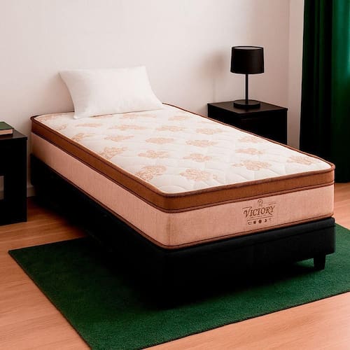 A cama Box da V-Store é a escolha perfeita para quem busca conforto e praticidade. Com o colchão Victory Solteiro, você garante noites de sono tranquilas, com seu toque macio e sistema de molas ensacadas que proporcionam suporte adequado e independência de movimentos. O Pillow Euro Pillow oferece suavidade extra, e a tecnologia EPS adiciona resistência e durabilidade ao colchão. Além disso, ele possui proteções contra ácaros, fungos, mofo e alergias, promovendo um ambiente de sono mais saudável. O colchão suporta até 150 kg por pessoa e vem com garantia de 12 meses.