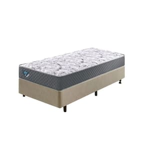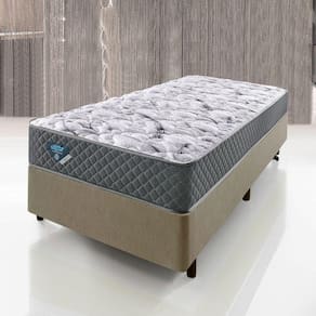 Cama Box Solteiro Reforçado 88x188x38cm e Colchão Adapto Molas Ensacadas Bege - Cinza