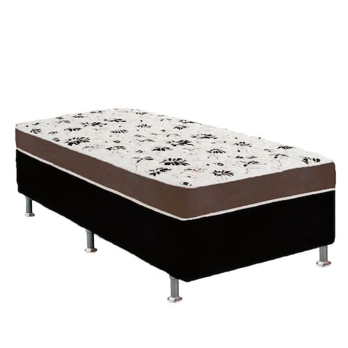 Cama Box Solteiro Suede Preto + Colchão Solteiro Suede Marrom Orto Molas Bonnel 88x188x55