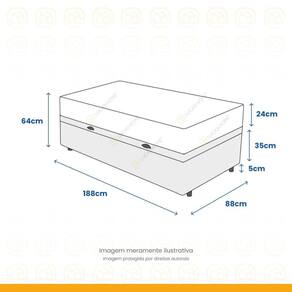 Especificações Técnicas Base Box: - Marca: Lucas Home; - Material: Madeira tratada; - Peso máximo recomendado: até 100Kg (por pessoa); - Altura da base: 27cm; - Altura dos pés: 12cm; - Revestimento: Material Suede; - Garantia: 12 meses; - Dimensões do produto (largura x comprimento x altura): 88x188x39cm.