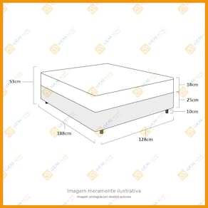 - Dimensões do produto (largura x comprimento x altura) Viúva: 128x188x35cm
