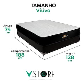 A tecnologia que a sua casa merece está na V-Store! O Conjunto Colchão Orthopedic + Base Box Bravus da V-Store é a união perfeita de conforto e resistência. O colchão, com espuma D33 e suporte extra firme, garante alinhamento ideal e proteção contra ácaros, alergias e fungos. A base box, com estrutura de madeira reflorestada e acabamento em tecido sintético, oferece durabilidade e um design moderno para o seu dormitório.Característica Do Colchão: Modelo: OrthopedicMarca: V-StoreTamanho: ViúvoDimensões: 128x30x188 (Largura x Altura x Comprimento)Conforto: Extra FirmeSistema: EspumaPillow: Não se aplicaPeso Máximo recomendado: 110 kg (Por pessoa)Proteções: Antiácaro, antialérgico, antifungo, antimofoGarantia: 12 Meses (Espuma)Característica Da Base: Marca: V-StoreModelo: BravusCor do Box: PretoTamanho: ViúvoDimensões: 128x44x188 (Largura x Altura x Comprimento)Estrutura: MadeiraPeso máximo recomendado: 150 kg (Por Pessoa)Altura do Box: 26 cmAltura dos Pés: 6 cmAltura total: 44 cmGarantia: 12 Meses (Estrutura) / 3 meses (Tecido)Selo Ecologicamente CorretoAtenção:- Antes de finalizar sua compra, recomendamos que verifique se as dimensões do produto são adequadas para serem transportadas pelos elevadores, portas, escadas e corredores de sua residência. Ressaltamos que não nos responsabilizamos pelo transporte do produto por meios específicos, como escadas, guinchos ou içamentos.- É possível que hajam leves variações de cor de acordo com o dispositivo que está sendo utilizado como smartphones, computadores, monitores e outros.
