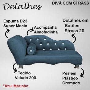Cama Caminha Diva Pet Veludo Strass Azul Marinho Dvinn