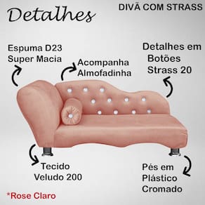 O Divã Cama Caminha Pet Veludo, é uma peça de mobiliário especialmente projetada para oferecer conforto e aconchego ao seu pet de estimação. Conta com uma espuma D23 super macia, que garante que seu pet tenha o suporte necessário para se sentir confortável, oferecendo um local aconchegante e macio para descansar e relaxar. Feito em uma estrtura toda em Madeira de Eucalipto e MDF modelado, muito resistente e segura. Divã produzido no tecido é veludo 200, resistente e de fácil limpeza, conta também com detalhes de botões de strass que são um toque de luxo no design do designer, adicionando um brilho sutil e elegante, deixando um ambiente ainda mais sofisticado para seu lar e seu pet. Os 04 pés são em plástico cromado, que fornecem estabilidade ao divã, e também o elevam ligeiramente do chão, o que pode ser benéfico para a limpeza do ambiente. Este produto chegará na sua casa separado em 01 volume.