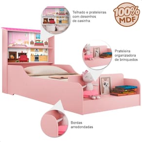 A Cama Casa Infantil Princesa é feita com um design totalmente pensado para um conto de Era uma vez, com cabeceira em formato de casa o design traz um toque mágico ao ambiente, oferecendo prateleiras que permitem guardar suas bonecas e objetos, deixando assim um quarto ainda mais charmoso e agradável. Além disso, a Cama Infantil princesa é acompanhada por um colchão confortável que oferece o suporte necessário para garantir uma noite de descanso tranquila. Feita com materiais de alta qualidade e durabilidade, esta cama é segura e resistente, garantindo a segurança da sua pequena. Seu design e funcionalidade tornam esta cama um móvel encantador para o quarto, criando memórias preciosas que durarão toda a vida.