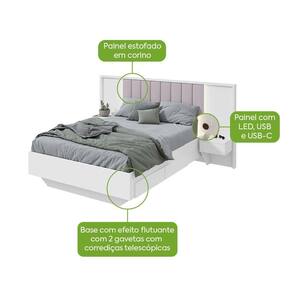 Informações Complementares (Novo) Painel com luzes de LED; Painel de cabeceira estofado; Base com efeito flutuante e 2 gavetas; 5 Travessões; Dispositivo antirruído. Itens Inclusos Acompanha Cama Auxiliar Não Acompanha Colchão Não Itens Inclusos 1 Cama e manual de montagem.