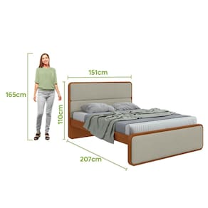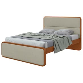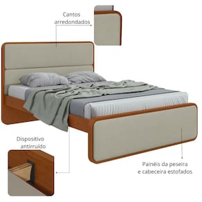 Características: Estrutura em 100 MDF Cantos arredondados Pés em MDF com espessura de 50mm Barras laterais em MDF de 25mm Painéis da peseira e da cabeceira estofados Estrado em MDF de 6mm Ideal para colchões de 1380mm 5 Travessões Dispositivo antirruído
