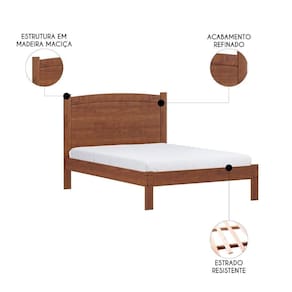 Cama Casal 140cm Pés Madeira Maciça Renzo Imbuia F07