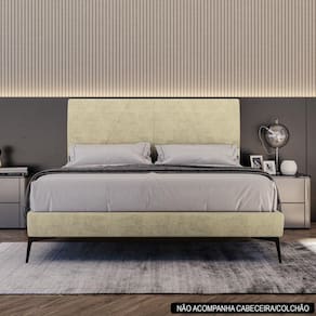 Essa base para colchão é o que há de mais moderno e elegante em Design de Móveis, com um acabamento que traz sofisticação e charme para o seu quarto. Ela tem pés metálicos que garantem resistência e durabilidade, e uma estrutura em madeira de reflorestamento, que respeita o meio ambiente e a natureza. Ah! Além dos pés metálicos a cama acompanha 6 pés de madeira, que ficam escondidos para manter a estética da cama e garante maior sustentação. A Cama Casal não acompanha colchão, ela é versátil e se adapta ao seu tipo preferido, seja ele de espuma ou box. E o melhor: ela é fácil de montar e de limpar, sem complicações.