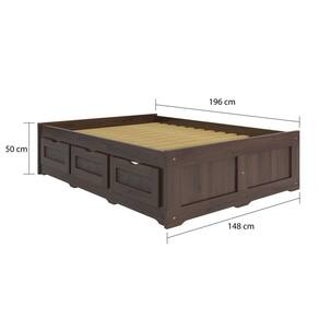 A cama de Casal 6 gavetas Dreams, é ideal para colchão de 1,38 metros de largura por 1,88 metros de comprimento. Não acompanha colchão. A cama foi desenvolvida para a otimização de espaço com a praticidade de possuir 6 gavetas funcionais. Fabricada em Madeira Maciça de Pinus com acabamento em Verniz PU, as gavetas funcionam com deslizantes de plástico com uma travessa central. Os estrados são de Madeira maciça de Pinus com reforço central todos parafusados.