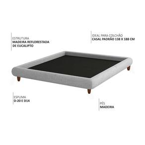 Cama Casal Base Box Pés Madeira 156cm Emma Linho Cinza Claro - Nexta Casa Cama Emma é a tradução perfeita da união entre sofisticação e durabilidade. Esta peça é um verdadeiro complemento de design para o seu quarto!Descrição do Produto Mais do que sustentar o seu colchão, esta base de cama foi pensada para transformar a forma como você enxerga o seu quarto. Seu design contemporâneo une formas arredondadas e suaves a uma estrutura firme, com pés de madeira que garantem estabilidade e durabilidade. O revestimento em linho adiciona um toque sofisticado e versátil, combinando com diferentes estilos de decoração. Uma peça que traduz equilíbrio entre funcionalidade e estética, tornando-se o detalhe que faz toda a diferença no seu espaço de descanso! Características Técnicas Estrutura: Madeira de reflorestamento (pinus, eucaliptos e placas de MDF) com imunização contra mofo, cupim e micro-organismos. Material do Enchimento da Estrutura: D-20 e D-14. Revestimento: Linho Pés: Madeira. Ideal para Colchão Casal Padrão: 138 x 188 cm. Medidas Altura Total: 28 cm Largura: 156 cm Profundidade: 200 cm Pés: 13 cm Peso: 53 kg Medidas Internas Altura: 7 cm Largura: 139 cm Profundidade: 189 cm Diferenciais Cama bipartido. Lateral estofada. Ideal para colchão de casal 138 x 188 cm. Quantidade de Volumes: 2. Necessidade de Montagem: Sim - fixação dos pés e encaixe dos módulos. Cuidados Utilizar um pano levemente umedecido com água, seguido de pano seco. Evitar exposição ao sol para preservar a cor vibrante do tecido. Não usar produtos abrasivos ou escovas. Garantia 3 meses contra de fabricação. Observações A tonalidade da cor pode variar de acordo com o lote do fabricante. Imagens ilustrativas; tonalidade pode variar devido à configuração de cores da tela. Objetos de decoração não inclusos. Produtos enviados embalados com , reduzindo riscos de danos. Verificar as condições da embalagem na e reportar danos no . até a porta de entrada ou portaria. Confirme as dimensões e compatibilidade do de instalação. Não nos responsabilizamos por montagem, desmontagem, instalação ou por escadas/elevadores. Marca: Não Informado