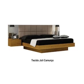Cama Casal Braga Com Espelho 2 Mesas de Cabeceiras Leifer