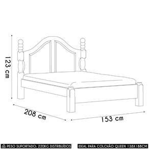 A estrutura é feita em madeira maciça, muito resistente e firme. Os pés torneados e o o estrado da Cama em madeira garante excelente sustentação contribuindo para o conforto, estabilidade e durabilidade do colchão.