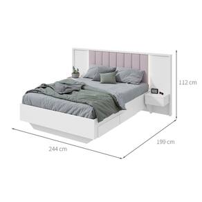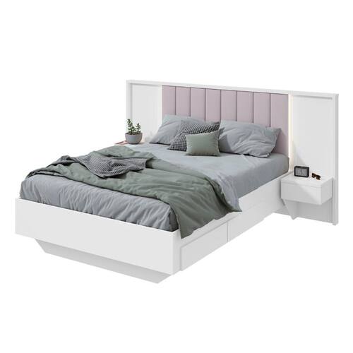 Cama Casal com 2 Mesas de Apoio Solaris 4 GV Revestimento Sintético Bege e Branca - Branco