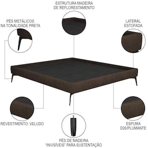A Cama Casal com Cabeceira 145cm Pés Metálicos Elisa S05 Veludo Marrom, da Mpozenato, é uma cama moderna e de design elegante, perfeita para qualquer quarto de casal!