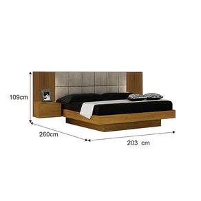 Particularidades da Cama: Características: - Fabricado em MDF; - Para colchão de 1,58m x 1,98m; - Painel estofado; - Mesa de cabeceira suspensa; - Corrediça telescópica;