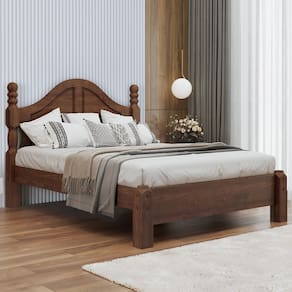 Com linhas que contam histórias de marceneiros artesãos, essa cama de madeira traz uma cabeceira majestosa com design curvo, onde o detalhe vazado e torneado se revela como uma obra de arte funcional. Cada recorte na madeira foi pensado para criar jogos de luz e sombra, transformando o simples ato de deitar em uma experiência sensorial. Os pés torneados robustos sustentam não apenas o colchão de casal, mas toda a tradição do design clássico, agora reinterpretada com o padrão da linha Zahav de excelência.