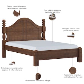 Cama Casal De Madeira Maciça Clássica Para Colchão 138x188 Zahav F06 Café - Lyam Decor