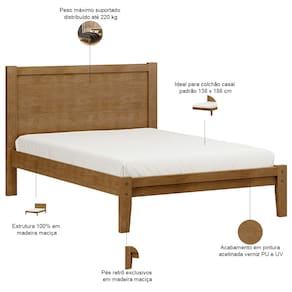 Com um design reto e clean, ela traz o essencial: estrutura robusta, conforto inquestionável e uma estética atemporal que dialoga com qualquer decoração. Cada detalhe foi pensado para valorizar a matéria-prima nobre feita 100% em madeira maciça, para uma durabilidade que atravessa gerações, além do minimalismo que nunca sai de moda. Enfim, uma cama de madeira ideal para quarto de casal que respira tranquilidade, onde cada elemento foi cuidadosamente escolhido para criar um santuário do descanso.