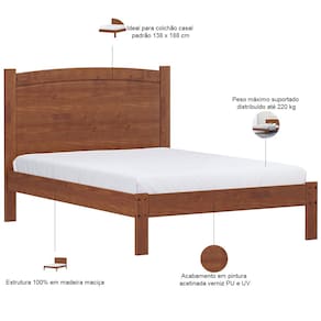 Perfeita para colchão casal 138x188cm, sua estrutura robusta em madeira maciça oferece base resistente, valorizando a simplicidade intencional. Além disso, o acabamento impecável e os pés discretos oferecem noites de descanso com puro estilo. Adicione ao seu carrinho e tenha um quarto de casal onde cada detalhe inspira tranquilidade e ordem visual.