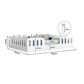 Cama Casal Infantil Montessoriana Helo - BrancoCama Casal Helo traz elegância e deixa as noites de sono ainda mais aconchegantes. Além de ser feita em material resistente de qualidade e possuir grades para segurança.Tipo: CamaModelo: HeloCor: Branco Garantia: 90 diasProduto DesmontadoNão acompanha colchãoEstrutura em MDFPés em Madeira MaciçaIdeal para 2 crianças ou pais e crianças juntos (maior espaço)Pintura UV Verniz BrilhoMedidas:Altura: 44cmLargura: 196cmComprimento: 144cmATENÇÃOIMAGENS MERAMENTE ILUSTRATIVAS REALIZADO EDIÇÃO, PODENDO HAVER UMA PEQUENA VARIAÇÃO DE COR DEPENDENDO DE CADA TELA OU MONITOR.Cama Casal Design Montessoriana Helo Branco + LuminÃria Led Marca: Madeira Store