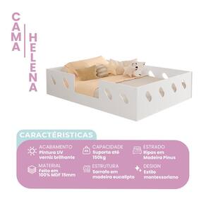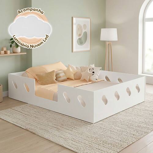 CARACTERÍSTICAS TÉCNICAS Tipo: Cama Infantil Montessoriana Modelo: Helena Material: 100% MDF (15 mm) Cor: Branco Acompanha luminária nuvem com entrada USB