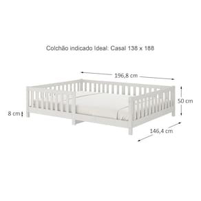 Largura: 196,4 cm Altura: 50 cm Profundidade: 146 cm Altura da grade de proteção: 50 cm Peso: 23,500 kg