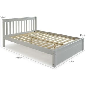 Características Gerais do Produto: • Material de Composição: Madeira Maciça Pinus Reflorestada • Acabamento: Verniz / Laca • Para colchão Tam.: Padrão casal 138x188 cm (não incluso). • Peso Suportado: 100 kg por pessoa. • Desmontado?: Sim