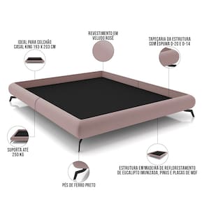 Cama Casal King Base Box Pés de Ferro Estilo Industrial 210cm Otto P05 Veludo Rosê - Lyam Decor - Rosa