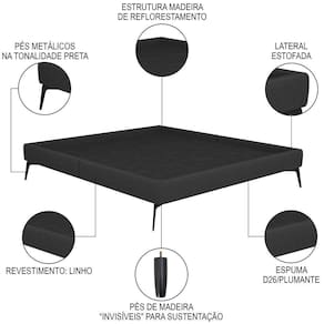 A Cama Casal King com Cabeceira 199cm Pés Metálicos Elisa S05 Linho Preto, da Mpozenato, é uma cama moderna e de design elegante, perfeita para qualquer quarto de casal!