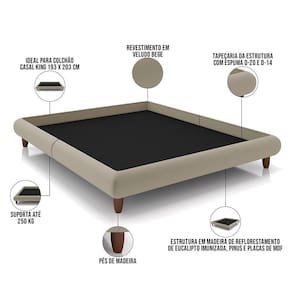 Peso máximo suportado por cama: 250 kg | OriginCountry: | Tipo de cama: Estofada | Cor: Bege | Altura: 28 cm | Peso: 72 Kg | Requer montagem: Sim | ProductHeight: 28 cm | OriginState: PR | ColorSupplier: Bege | Material: Madeira de Eucalipto, Espuma | MaterialFamily: Madeira de Eucalipto, Espuma | ProductContents: 01 Cama | ColorFamily: Bege | ProductWeight: 72 kg | Modelo: Otto | Color: Bege | ProductWidth: 210 cm | ProductWarranty: 90 dias após o do produto | ProductLength: 215 cm | Model: Otto | Largura: 210 cm | Tamanho da cama: King | ProductInstructions: Produto para uso em ambiente interno, nao devendo ficar exposto ao sol, calor e umidade excessivos. | SizeDescription: Largura: 210 cm x Altura: 28 cm x Profundidade: 215 cm | ColorSimple: Bege | SupplierSimpleName: Cama Casal King Pés de Madeira 210cm Otto P05 Veludo Bege - Lyam Decor