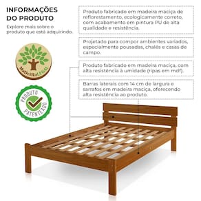 Tipo: Cama Casal Modelo: Turca Cor: Castanho Cama não acompanha colchão e demais itens Fabricado em Madeira Maciça Ripas em mdf Acabamento em Pintura PU Barras laterais com 14cm