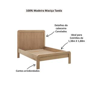 Características: Estrutura em Madeira Maciça de Pinus Taeda de Reflorestamento Pintura Acetinada Verniz PU e UV Lastros fixos (estrado) Pés retos em madeira maciça Possui 3 pés lastro para apoio Cabeceira e peseira com detalhe arredondado Peso máximo suportado: 200Kg distribuidos Ideal para colchão de casal de 1,38 x 1,88 *NÃO ACOMPANHA COLCHÃO*