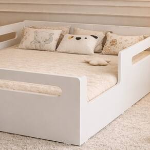 A Cama Montessoriana Infantil Branca é perfeita para quem busca segurança, conforto e desenvolvimento para a criança. Inspirada no método Montessori, ela possui altura baixa e proteção lateral, permitindo que a criança suba e desça da cama com facilidade e segurança, estimulando a autonomia desde cedo.