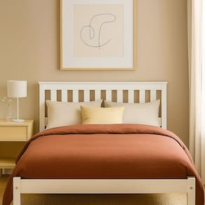 • Estrado: Ripas em madeira natural, oferecendo excelente suporte e ventilação para o colchão