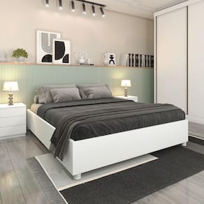 Características: Estrutura: MDP Estrado: Madeira reflorestada Pintura: Impressão UV e verniz Tamanho do colchão indicado: 138 cm x 188 cm Acompanha colchão: Não Tipo: Casal Peso Suportado: 150 kg Altura dos pés: 5 cm Material do pés: PVC
