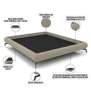 ProductWidth: 156 cm | MaterialFamily: Madeira de Eucalipto, Espuma | Altura: 28 cm | Cor: Bege | ProductWeight: 54 kg | Model: Otto | ProductLength: 200 cm | Tipo de cama: Estofada | Requer montagem: Sim | Peso máximo suportado por cama: 250 kg | ProductWarranty: 90 dias após o do produto | Modelo: Otto | ProductHeight: 28 cm | ProductContents: 01 Cama | ColorFamily: Bege | ColorSupplier: Bege | OriginState: PR | ProductInstructions: Produto para uso em ambiente interno, nao devendo ficar exposto ao sol, calor e umidade excessivos. | SupplierSimpleName: Cama Casal Pés de Ferro Estilo Industrial 156cm Otto P05 Linho Bege - Lyam Decor | Peso: 54 kg | ColorSimple: Bege | Color: Bege | SizeDescription: Largura: 156 cm x Altura: 28 cm x Profundidade: 200 cm | Material: Madeira de Eucalipto, Espuma | Tamanho da cama: Casal | OriginCountry: | Largura: 156 cm