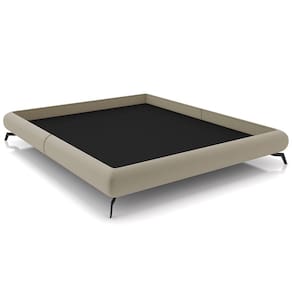 Características: Estrutura em madeira de reflorestamento de eucalipto imunizada contra mofo, cupim e micro-organismos, pinus e placas de MDF. Revestimento em Veludo na cor Bege. Tapeçaria da estrutura com espuma D-20 e D-14. Ideal para colchão casal queen 158 x 198 cm. Não acompanha colchão e cabeceira. Pés de ferro preto. Peso suportado: Até 250 kg.