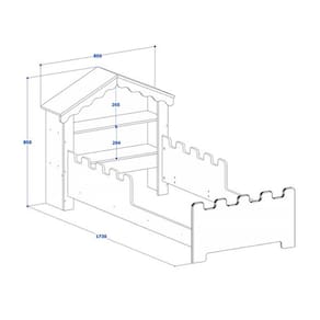 A cama juvenil Magia tem o objetivo de levar os sonhos de suas pequenas para os contos de fada e é perfeita para o quarto da sua filha, com design inovador ela foi projetada para oferecer conforto e segurança para a criança, suas laterais possuem barras de proteção em formato de castelo que além de dar um toque super delicado tem a finalidade de evitar quedas, possui prateleira na cabeceira para guardar brinquedos ou decorações. A cama é produzida em mdf para oferecer maior qualidade e resistência.